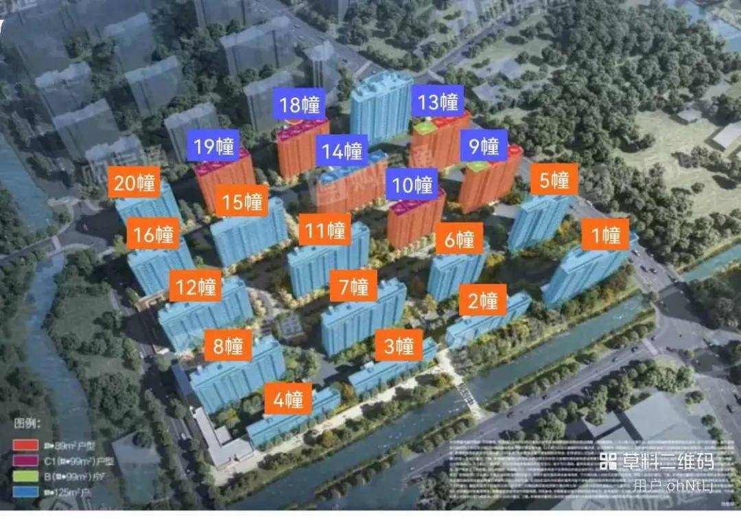 小区共有6种户型,2#、3#、4#共3幢5层洋房,为修造面积约140平的4房2厅2卫;14#和15#共2幢14层小高层,为修造面积约125平的3+1房2厅2卫;1#、5#、9#以及13#共4幢17-18层高层的中心及东边户,修造面积约89平的3房1卫;其他均为修造面积约99平3房2厅2卫产物;小区均为精装交付,5-14层一梯两户计划,17-18层为两梯四户和三梯六户计划。